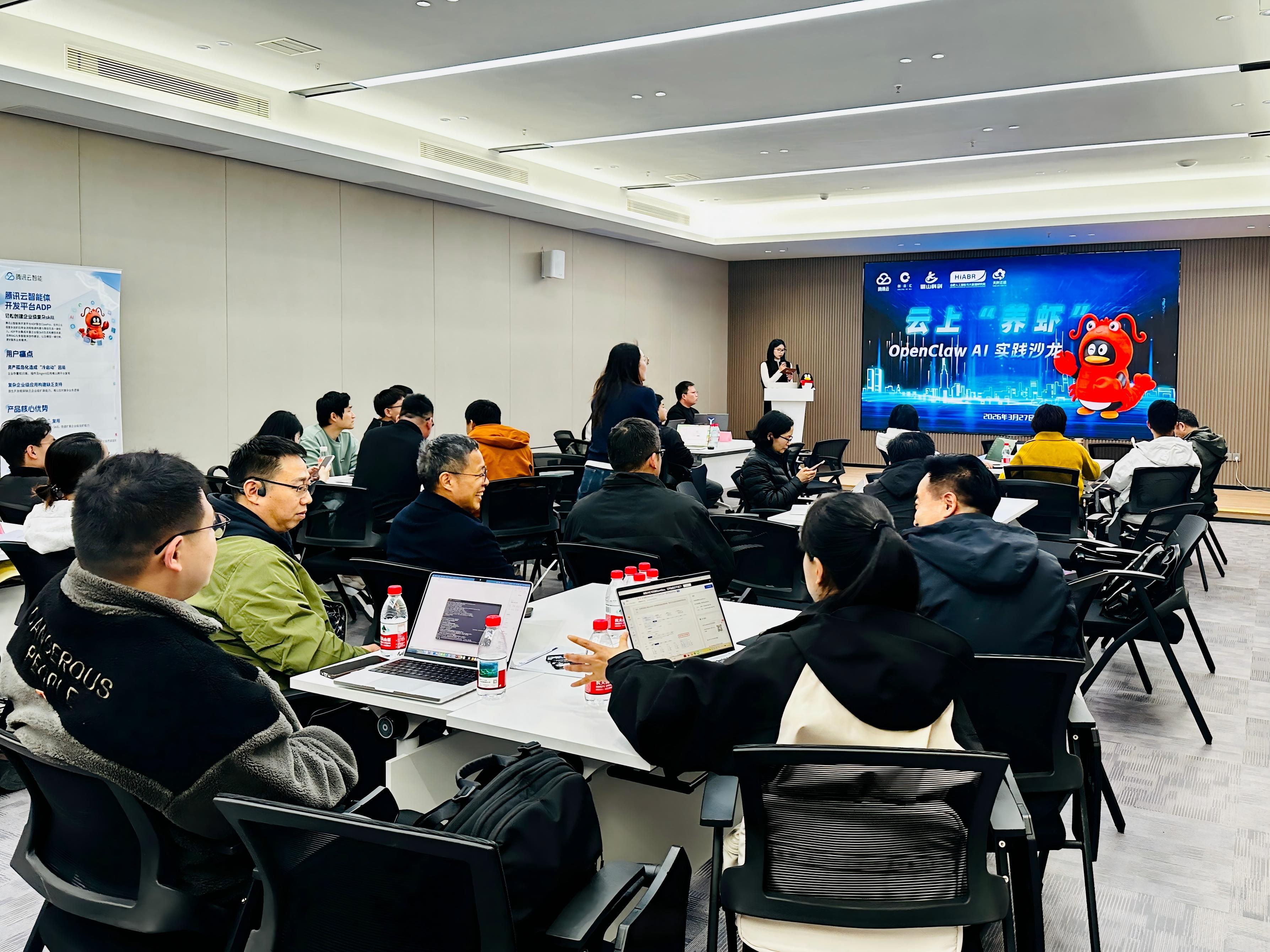 3月27日下午,“云上养虾:OpenClaw AI实践沙龙”活动在科里科气合肥人工智能大厦举行。本次活动由蜀山科创集团联合腾讯云、合肥创合汇科创服务有限公司、合肥人工智能与大数据研究院、合肥天时软件开发有限公司共同主办,吸引了蜀山区相关产业领域企业代表齐聚一堂,共同探讨AI技术的前沿应用与安全落地。