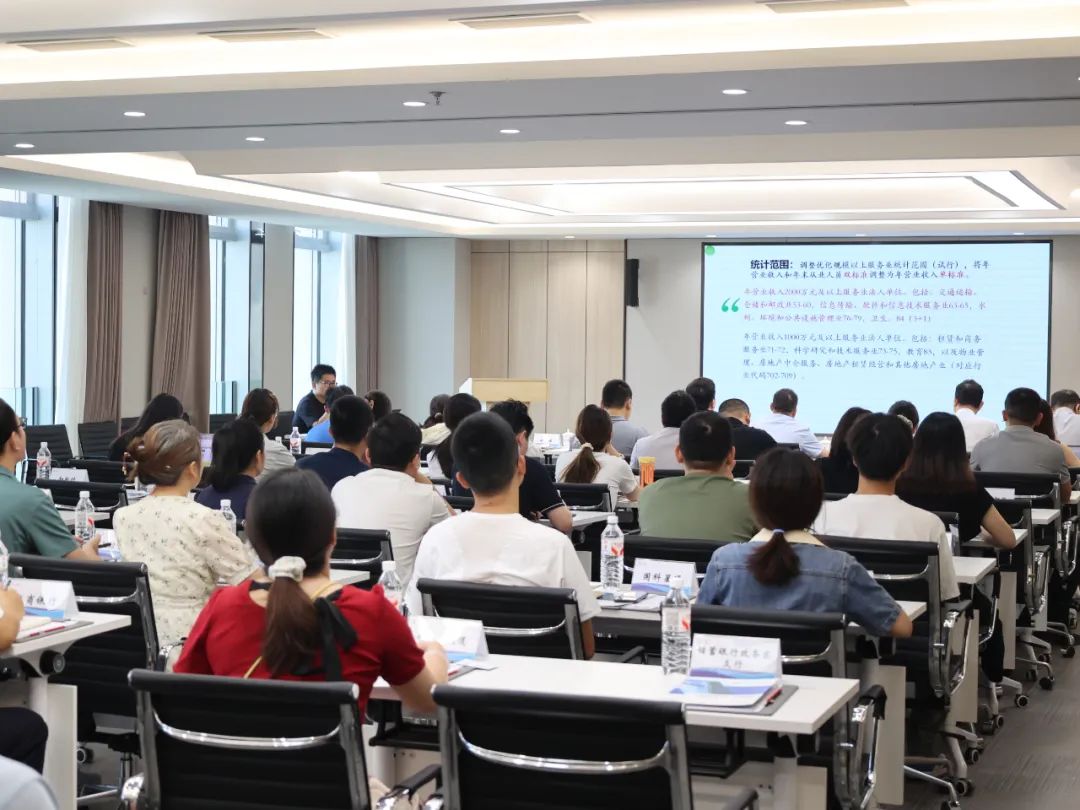 “企业升规作为政策支持的重要基础,近年来已成为企业享受各类优惠政策的前提条件。”会上,区统计局以《规上服务业企业申报》为题,现场拆解“规上服务企业”入库原则、申报材料、增值税税率情况等要点。企业入库纳统,是指达到一定规模、资质或限额的法人单位通过逐级审批,最终由国家统计局审核通过,纳入一套表单位库,定期向国家统计局报送统计数据。据介绍,企业升规首先需达到一定营收规模,不同行业标准有所差异,如交通运输、仓储和邮政业等年营业收入需达到2000万,租赁和商务服务业等行业需达到1000万,而居民服务、修理和其他服务业等则需达到500万。申报企业必须是独立法人单位,集团公司子公司或控股公司数据不可合并上报。此外,企业营业活动需包含服务业且服务业营收占比需超50%,入库类型分为年度入库和月度入库两种,年度入库适用于“规下升规上”及新开业企业,月度入库仅适用于新开业企业。