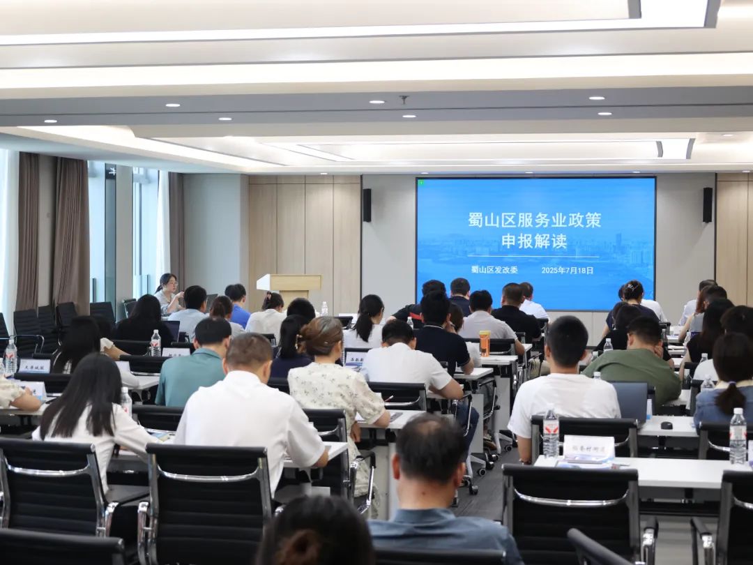 区发改委相关负责人围绕蜀山区服务业政策申报进行详细解读。从发展阶段、服务对象、经营目的、发展规模等分类角度为切入点,为大家科普了服务业的概念与类型,介绍了合肥市及蜀山区服务业发展情况。蜀山区作为服务业大区,规上服务业企业体量占比大、创新活力强、服务业集聚区数量多,涵盖科技服务、金融商务、电子商务、健康养老、旅游休闲等多个领域,整体形成以大型集聚区为核心,多元特色产业集聚区协同,优势互补的良好态势。近年来蜀山区通过摸排储备、升规入库、监测培育、调整优化等工作举措支持服务业发展,并出台了《加快服务业高质量发展若干政策(2025年)》等专项政策,建立服务业产业政策体系,引导资源向这些重点领域集聚,助力市场主体做大做强。